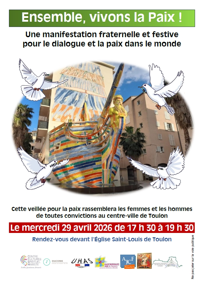 Une manifestation dynamique et festive pour le dialogue et la paix dans le monde. Une Veillée pour la paix rassemblera les femmes et les hommes de toutes origines et confessions au centre-ville de Toulon.